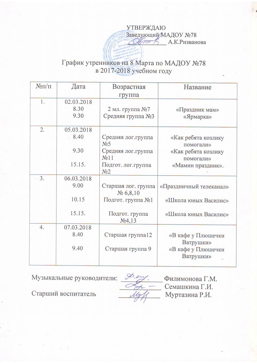 - График утренников 26.02.2018