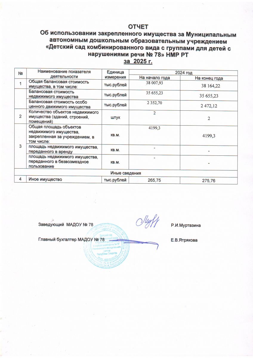 Отчет об использовании закрепленного имущества за МАДОУ№78 2026 документ 1 документ 2