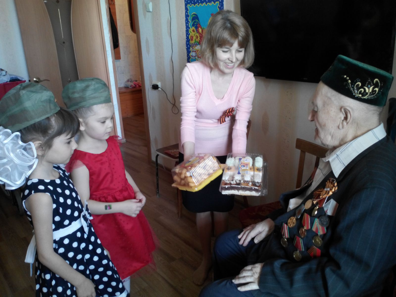 На традиционная встрече с ветераном Великой Отечественной войны Азгатом Харисовичем Мирсияповым воспитанники и сотрудники детского сада выразили огромную благодарность, пожелания здоровья и благополучия, подарком стало исполнение стихов и песен воспитанниками группы №3. фото, фото, фото, фото