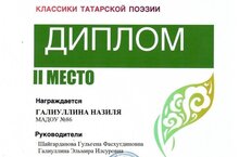 Поздравляем воспитанницу группы №4 Галиуллину Назилю - победителя Всероссийского конкурса художественного слова "Классики татарской поэзии". Молодец! Желаем веселого, теплого лета и новых свершений. -