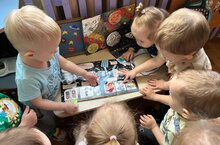 Воспитанники младших групп совершили увлекательное "Космическое путешествие" - узнали историю появления первых космических кораблей и имена первых покорителей космоса.