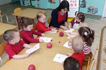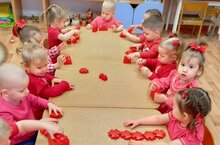 Кечкенәләр төркемендә "Төсләр иленә сәяхәт" исемле проект эшчәнлеге алып барыла. Бу атнада 11 нче төркемдә "кызыл төс" белән танышу буенча уеннар, шөгыльләр оештырылды.