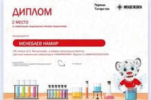 Воспитанник группы №1 Менебаев Намир принял участие в номинации Видеоролик "Химия творчества" и занял 2 почётное место.
