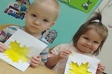 "Иҗади отчет атналыгы" кысаларында кечкенәләр төркемендә "Көзге яфраклар" темасына рәсем шөгыле үткәрелде. Шөгыль барышында балалар сары төс белән таныштылар һәм яфраклар буяу белән шөгыльләнделәр.