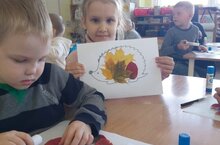 Воспитанники старшей группы №6, приложив немного усилий, сохранили краски осени надолго, сделав прекрасные аппликации. Для этого им понадобились - лист бумаги в качестве основы, собранные листья, клей, кисть, фломастер. -