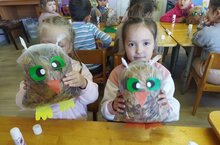 Воспитанники группы №1 создали потрясающую поделку в виде совы из сухих листьев и целлофанового пакета.