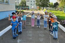 И, пока родители принимали важное решение, наши педагоги Хасанова Г.Д., Рязапова Г.Г. совместно с коллегами ДОУ №84 и ДОУ №87 на территории СОШ №31 организовали для детей игры - эстафеты, флешмоб, конкурс рисунков на асфальте. -