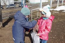 Дети очень любят помогать взрослым. Наши воспитатели с удовольствием даёт детям такую возможность, под чутким руководством, вместе привели в порядок свои прогулочные участки.