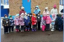 На прогулке воспитанники ещё раз отметили, что вода может быть в разных состояниях (снег, лёд, лужа).