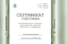 Воспитанники приняли участие в Республиканском конкурсе экологических рисунков "Экология в традициях" и награждены сертификатами участника.