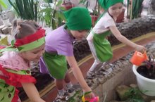У нас в детском саду есть кабинет "Зимнего сада", где растёт много разных комнатных цветов. Детям очень нравится ухаживать за цветами. Они вместе с воспитателями рассматривают комнатные растения, обсуждают условия, необходимые для их выращивания, поливают, протирают листья от пыли.