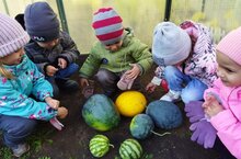 "Карбыз һәм кавын үстерү" проекты эшчәнлеге барышында 1 нче төркемдә тәрбияләнүче балалар, тәрбияче Гөлнара Разимовна белән берлектә теплицада кавын һәм карбыз үстерделәр. Әлеге проект кысаларында балалар, карбыз һәм кавын кебек җылы яратучан җиләкләрне теплицада үстерергә мөмкин булуын исбатладылар. Проект өстендә эшләгәндә иң мөһиме, кавын һәм карбыз төрен дөрес сайлау иде. Аларның үсешен күзәтү балаларга бик ошады.
