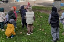 Воспитанники группы №5 на прогулке наблюдали за дубом, собирали желуди для поделок. -