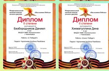Бүген шәһәребезнең 49 нчы балалар бакчасында "Бөек Җиңү кайтавазы" дип исемләнгән зонакүләм бәйгенең йомгаклау туры булды. Әлеге чарада безнең балалар бакчасыннан тәрбиячеләр Бәдретдинова Р.С. һәм Шәймәрданова Г.Ф. да катнаштылар. "Иң яхшы чаралар сценарие" номинациясендә тәрбиячеләребез беренче дәрәҗә Дипломга лаек булдылар. Котлыйбыз!