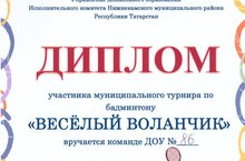 Сегодня на базе МБОУ "Гимназия №22" состоялся турнир по бадминтону "Золотой воланчик" среди детей дошкольных образовательных учреждений Нижнекамского муниципального района. Команда нашего детского сада награждены Дипломом участника. Поздравляем!
