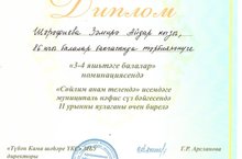 Алабуга шәһәренең 25 нче санлы балалар бакчасында оештырылган "Уйныйбыз! Өйрәнәбез! Үсәбез!" авторлык эшчәнлек бәйгесендә катнашып педагогларыбыз Нургалиева А.Р., Рязапова Г.Г. 3 нче дәрәҗә Дипломга ия булдылар.