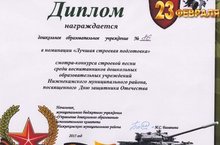 Сегодня прошел финал смотра-конкурса строевой песни среди воспитанников дошкольных образовательных учреждений Нижнекамского муниципального района, посвященного Дню защитника Отечества. Отряд нашего детского сада получил Диплом в номинации "Лучшая строевая подготовка". МОЛОДЦЫ!