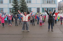 Сегодня в детском саду проводился День Здоровья! Все вышли на зарядку, весь день дети соревновались в силе и ловкости.