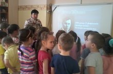 Воспитатель по обучению татарскому и русскому языкам Саматова Ляйла Наиловна провела образовательную деятельность. Она познакомила детей с жизнью и творчеством татарского писателя Мусы Джалиля. Воспитывала уважение и интерес к творчеству татарских писателей. Организовала в кабинете выставку книг и наглядного материала к дню рождения Мусы Джалиля.