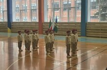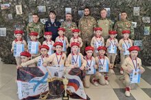 Именно этой команде юнармейцев выпала честь поздравить присутствующих мужчин с наступающим праздником!