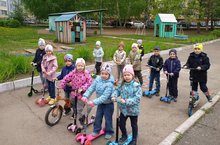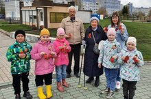 Дети старших групп в рамках акции «Россия рисует» изготовили флажки и поздравили жителей микрорайона в парке «Нефтехимиков»
