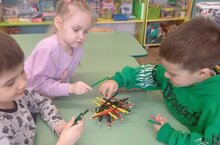 Дети играли в игры: «Собери солнышко», «Найди свой цвет», «Собери рисунок» а также отгадывали загадки и конструировали из карандашей.