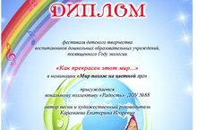 24 апреля на базе нашего ДОУ прошел отборочный тур фестиваля детского творчества, в котором приняли участие воспитанники 10 дошкольных учреждений нашего города. Были представлены номера в номинациях "Хореография", "Вокал", "Детский оркестр", "Чтение стихотворений". Наш детский сад представлял вокальный ансамбль "Радость" с композициями "Улыбается Земля" и "Зеленый мир".