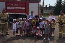 Сегодня дети средней и старшей групп, воспитатели и родители посетили пожарную часть №91. Ребятам показали все технику, которая стоит на вооружении части, рассказали о последовательности действий при пожаре и эвакуации из горящего помещения.