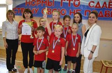 10 октября 2018 года на базе МБДОУ «Центр развития ребенка – детский сад №89» был проведен финал ГТО среди воспитанников дошкольных учреждений г. Нижнекамска Целью проведения мероприятия является возрождение и развитие традиций физической культуры и массового спорта в субъектах Российской Федерации, организациях и образовательных учреждениях. Дети соревновались в следующих дисциплинах: 1. Бег 30 м (челночный бег) 2. Сгибания и разгибания рук в упоре лежа на полу (отжимания) 3. Наклон вперед из положения стоя 4. Прыжок в длину с места 5. Метание теннисного мяча в цель Распределение мест: По итогам соревнований выявили следующие результаты (по общему количеству очков): 1 место – 89 детский сад 2 место – 45 детский сад 3 место – 88 детский сад Поздравляем наших воспитанников и педагогов с заслуженной победой!!! -