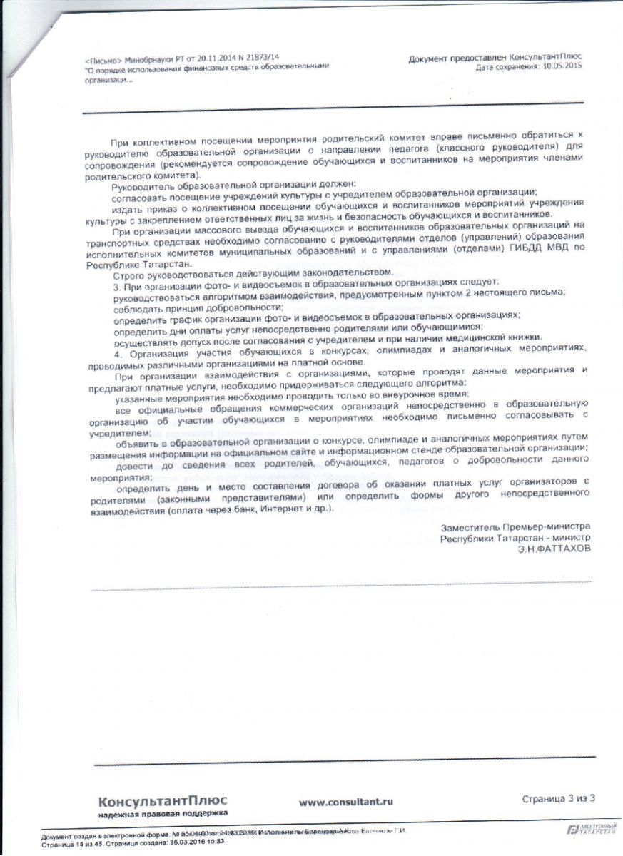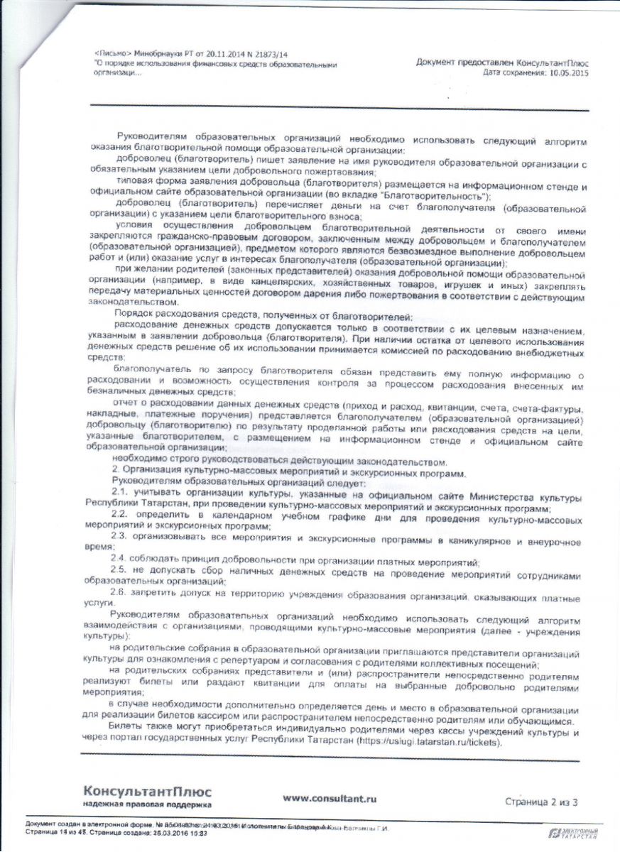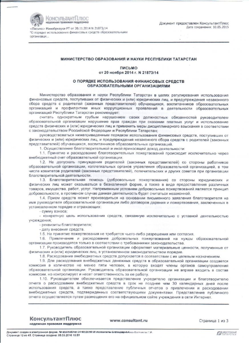 Письмо МОиН РТ от 02.10.2014 №18992/14 "О запрете сбора денежных средств и привлечения материальных ресурсов" Письмо МОиН