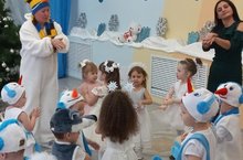Новый Год - это самый волшебный, веселый праздник, которого дети ждут, веря в сказку и чудо… С 26 по 28 декабрая в нашем детском саду прошли новогодние утренники. Красиво украшенный зал, нарядная елка, подарки, Дед Мороз и Снегурочка, и множество других сказочных персонажей ожидали детей дошкольного учреждения. Ребята погрузились в мир чудес, приключений, невероятных превращений и сюрпризов. Дошколята танцевали, пели песни, водили хороводы, с удовольствием участвовали в играх. Дети получили массу положительных эмоций и долгожданные подарки из рук Деда Мороза.