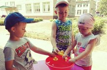 Жаркое, солнечное лето – залог хорошего настроения. Теплое солнышко ласкает наших малышей своими лучами, яркие краски цветущих растений радуют глаз. Прогулки стали еще разнообразней, интересней и продолжительней. Воспитатели организовывают для детей игры с водой, чему воспитанники очень радуются. В жаркие, летние дни без таких игр не обойтись. Вода успокаивает, расслабляет, а в теплую погоду детям просто приятно поплескаться в ней. Воспитанники играют в такие игры как: «Рыбалка», Кто быстрее нальет водичку», «Достань камушки со дна», «Купание кукол» и т.д.