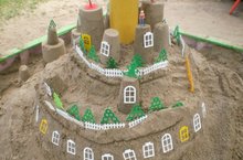 В предверии праздника "День строителя" у нас прошел конкурс на лучшую постройку дома из песка.