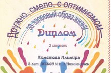 В секции "Я выбираю жизнь" , конкурсная работа "Спорт- это жизнь", дипломом 3 степени награждены, воспитанники группы №3, Ахметова Альмира и Ибрагимова Камиля. Руководитель Устинова М.Н.