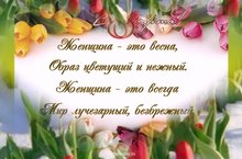 Удачно праздник совпал с началом весны. Распускающиеся первые цветы: тюльпаны, мимоза делают 8 Марта цветущим, благоухающим днем. Традиционными подарками на 8 марта для любимых женщин считаются духи, ювелирные изделия, цветы же — просто обязательны!!! -