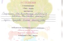 Сегодня, на базе МБДОУ №37, прошел муниципальный конкурс "Школа юного эколога". Наша воспитанница, Спирчина Яна 5 лет, старшая группа №7, приняла участие в конкурсе "Эко-мода". Яна представила свой костюм под названием "Фантиковая фантазия" и заняла первое место в номинации эко-леди!!! Поздравляем!!! Отдельную благодарность хотим выразить бабушке Яны, за создание замечательного костюма!!!