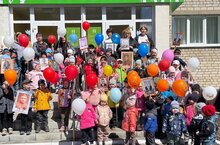 Детишки серьезно и бережно держали в руках портреты родственников - участников Великой Отечественной войны.