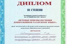 Участие педагога в муниципальном конкурсе на лучший мастер - класс "Игровые приемы обучения дошкольников татарскому языку" 01.12.2017