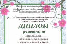 Участие в IV Региональном конкурсе видео поздравлений детей дошкольного возраста "Мама - солнышко моё!"