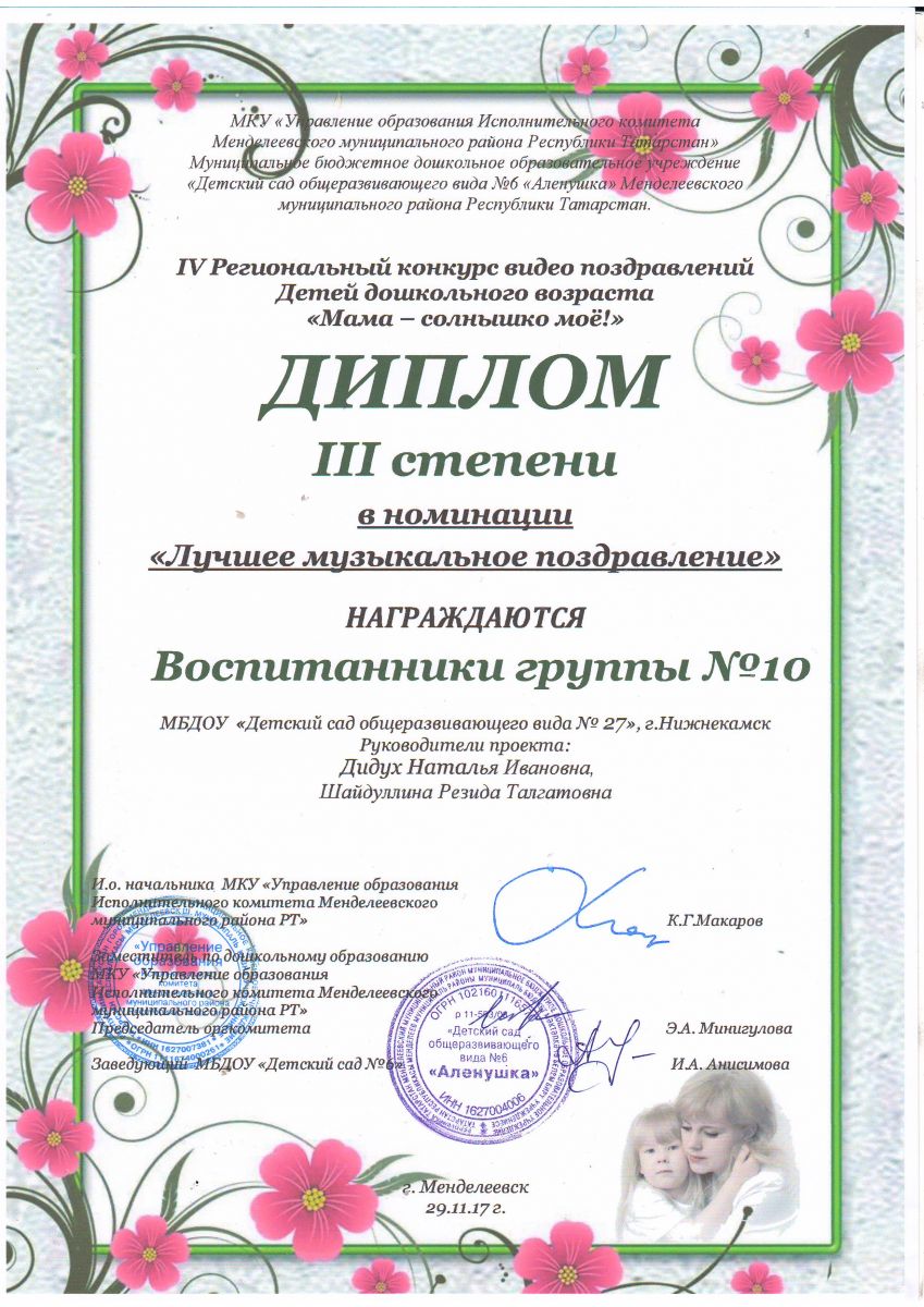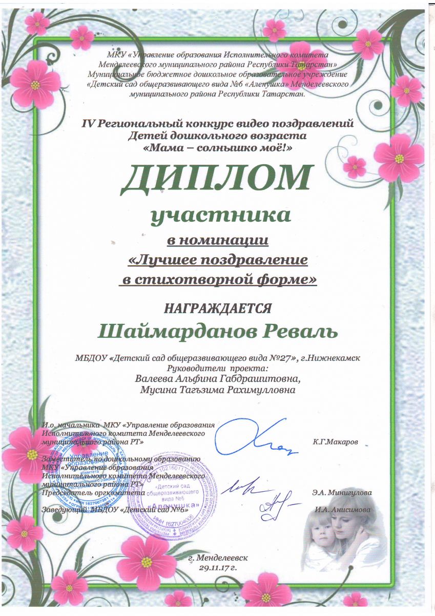 Короткое название: МБДОУ «Детский сад общеразвивающего вида №27» НМР РТ
