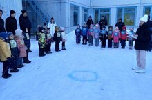 Папы показали свою ловкость и силу, перевозя детей на ледянках — смех и радость были слышны повсюду! А потом ребята попробовали свои силы в меткости, катая мячики в цель.