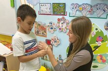 Где ребята изготовили браслеты из бусин для мам к празднику. -