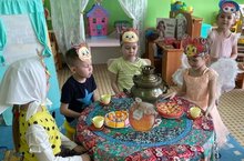 Сегодня для детей нашего детского сада педагоги устроили традиционное уличное гулянье с конкурсами, играми, забавами и конечно же угощение блинами. Все дети очень ждали этот праздник, готовились к нему и провели его по-особенному весело, в красивых платках, бусами из баранок и цветами! В гости к детям приходили Дед Мороз, Зима, Баба Яга и Весна. Каждый из героев предложил ребятам конкурсы с испытаниями, загадками, подвижными играми. -