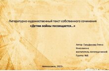 Гильфанова Елена Николаевна, воспитатель 8 группы, приняла участие в Международном конкурсе "Была война ..." она представила письмо собственного сочинения "Детям войны посвящается" и заслужено, была награждена дипломом 2 степени, от всей души поздравляем и желаем дальнейших успехов