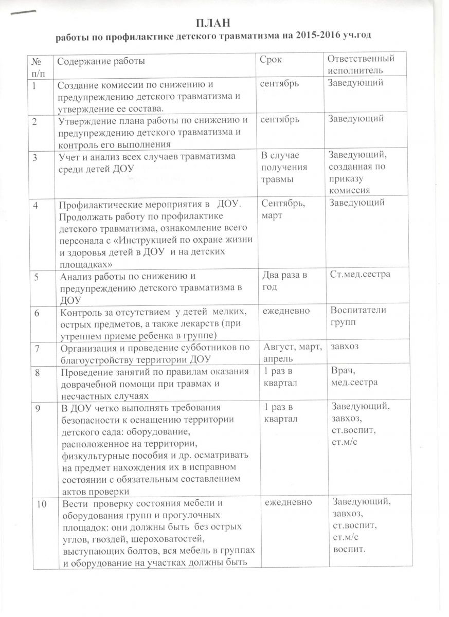 План по профилактике детского травматизма