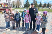 В преддверии праздника Дня Победы, дети подготовительной к школе группы и сотрудники детского сада приняли участие во Всероссийской акции «Мы помним». Цель акции: воспитание патриотизма, гордости за героизм нашего народа, чувство уважения к старшему поколению. Дети поздравляли жителей микрорайона с Днем Победы, дарили бутоньерки с георгиевской ленточкой.