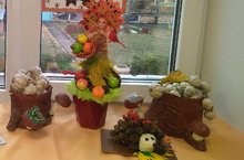 В группах детского сада организованы творческие выставки "Осенние чудеса". Дети и родители проявили творчество, фантазию при создании поделок из природного материала. Создавая совместно с детьми поделки, родители способствуют развитию художественно-эстетического вкуса, тоудовому воспитанию детей.