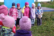 Воспитанники детского сада поздравили жителей микрорайона с Днем улыбок, организовали небольшой праздничный концерт на площадке возле дома Вокзальная 32.