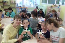 Сегодня состоялась акция "Подари ромашку". Дети старшего дошкольного возраста раздавали прохожим ромашки – символ праздника, выполненных своими руками, с пожеланиями здоровья, счастья и приглашали жителей микрорайона на праздник в парк "Семья".