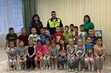 Сегодня с детьми подготовительных к школе групп состоялась встреча с инспектором Госавтоинспекции Бакировым А.Л. Целью этой встречи было закрепление знаний о правилах безопасного поведения на дорогах, профилактика детского дорожно-транспортного травматизма. На протяжении встречи дети с большим вниманием и интересом слушали Алмаза Линаровича, задавали вопросы. В конце встречи Алмаз Линарович пожелал ребятам быть осторожными, внимательными, напомнил, что у ребят должны быть светоотражающие элементы на одежде, а также подарил им светоотражающие наклейки.